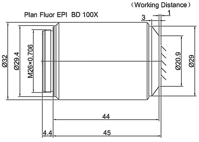 Plan Objective Bright and Dark Field 100X, Optical System Characteristics Infinite Correction, Observation Method Bright Field / Dark Field, Level of Chromatic Aberration Correction Achromatism, Focal Length 2MM, Numerical Aperture 0.9, Working Distance 1.4MM, Field Number of The Objective 25MM, Resolution 0.31um, Depth of Focus 0.34um