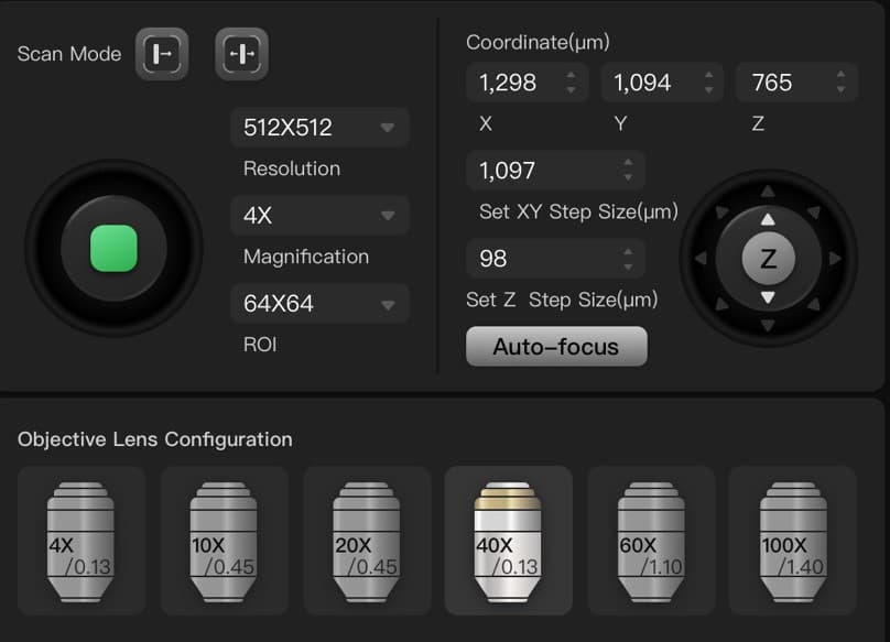 40x:0.13mmx0.13mm | 60x:85umx85um | 100x:51umx51um